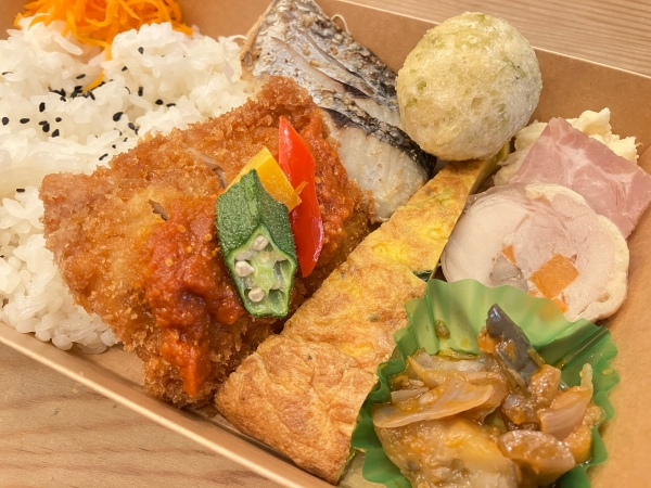 本日10/1(水)の日替わりは、サワラのオーブン焼きと若鶏のチキンカツをメインに詰め合わせております♪