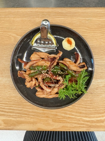 醤油とバターで炒められたイカとアスパラは間違いない味です🤤